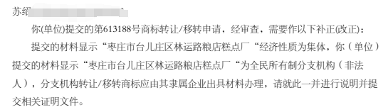 1.商標(biāo)持有人“棗莊市臺(tái)兒莊區(qū)林運(yùn)路糧店糕點(diǎn)廠”它屬于分支機(jī)構(gòu),如果轉(zhuǎn)讓商標(biāo)需要分支機(jī)構(gòu)隸屬企業(yè)出具材料辦理,并且提交企業(yè)相關(guān)材料。