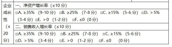 企業(yè)凈資產增長率或銷售收入增長率為負的,按0分計算。第一年末凈資產或銷售收入為0的,按后兩年計算;第二年末凈資產或銷售收入為0的,按0分計算。
