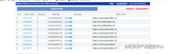 石家莊以嶺藥業(yè)股份有限公司已經(jīng)在商標(biāo)里面已經(jīng)做了很好的了。注冊(cè)了例如“連花清”“連花”“連花清非”等商標(biāo)。